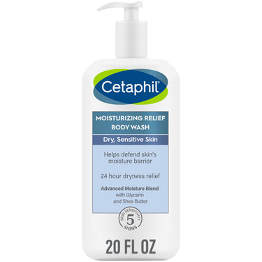 Cetaphil Body Wash, Moisturizing Relief Body Wash for Sensitive Skin, Creamy Rich Formula Gently Cleanses and Gives 24 Hour Relief to Dry Skin, Hypoallergenic, Fragrance Free, 20 oz