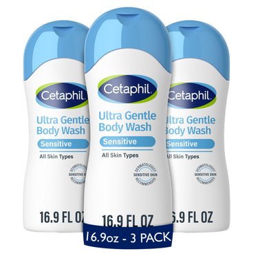 Cetaphil Ultra Gentle Refreshing Body Wash, For Dry to Normal, Sensitive Skin, 16.9oz Pack of 3, Aloe Vera, Calendula, Vitamin B5, Hypoallergenic, Paraben Free, Fragrance Free, Dermatologist Tested