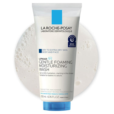 La Roche-Posay Lipikar AP+ Gentle Foaming Moisturizing Wash, Shea Butter + Niacinamide + Glycerin, Moisturizing Body Wash & Face Wash For Dry Skin, National Eczema Association Accepted, Soap Free