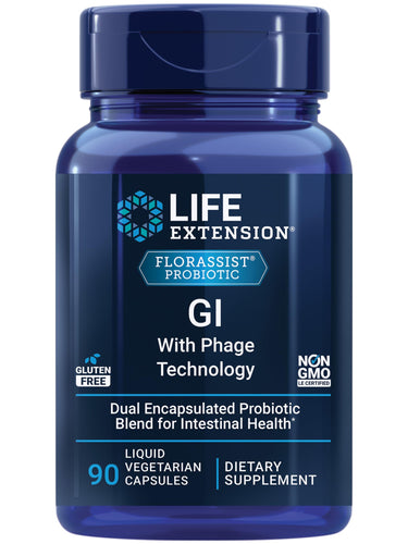 Life Extension FLORASSIST GI with Phage Technology, Digestive Health, probiotic Support, Nutrient Absorption, 7 probiotic strains, bacteriophage Blend, 90 Liquid Vegetarian Capsules