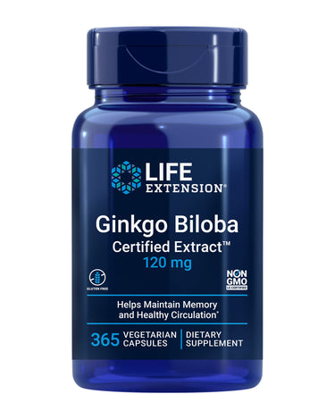 Life Extension Ginkgo Biloba Certified Extract™, 120 mg, Helps Maintain Memory & cognition, Gluten-Free, Non-GMO, Vegetarian, 365 Capsules