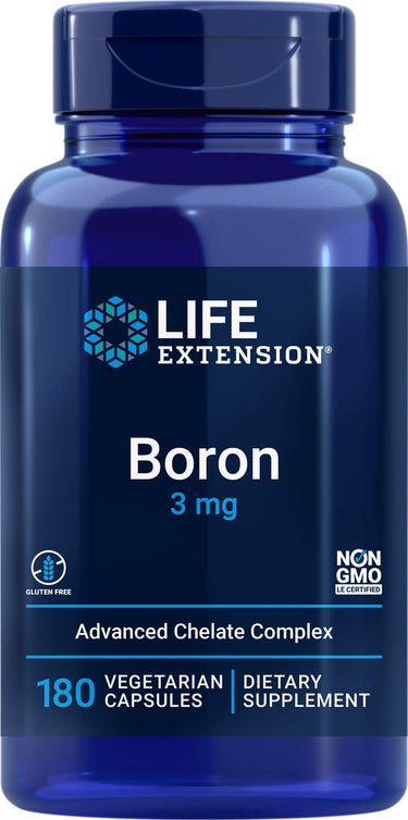 Life Extension Boron 3mg 180 Veg Caps - Triple Boron Complex with Boron Citrate, Glycinate, Aspartate - 3 mg Capsules - Enhanced with Vitamin B2