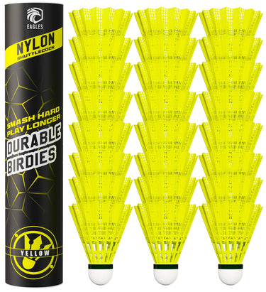 EAGLES badminton shuttlecocks are great to have fun with friends or to train for a tournament. Eagles Nylon badminton shuttlecocks are carefully crafted to help you step up your game and boost your skills. Each pack comes with 12 durable badminton shuttlecocks that are just right for both professionals and beginners. We choose Nylon shuttlecocks because of their durability.