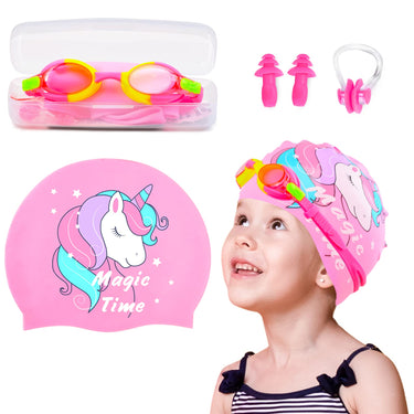 AuSletie Kids Swim Caps for Girls, Toddler Silicone Swimming Cap for Kids, Durable Comfortable Swimming Caps for Girls