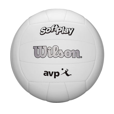 Wilson AVP Soft Play Volleyball - Official Size, White, 18-Panel, Machine-Sewn Construction, Butyl Rubber Bladder, Sponge-Backed Synthetic Leather Cover, Ideal for Ages 13 and Up