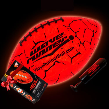 Wave Runner LED Light-Up Football - Glow in The Dark Football Games- Size 10.35 in. with Pump and Batteries Included | Great for Adults, Teens, Football Fans & Players (Orange W/Cracks)