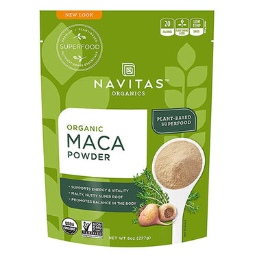 Navitas Organics Maca Powder energizes naturally, without the jitters and crashes of caffeine. Sweet and malty, Maca Powder is delicious in smoothies, warm drinks, oatmeal and baked goods. Maca helps balance stress levels and bolster resiliency in the body.